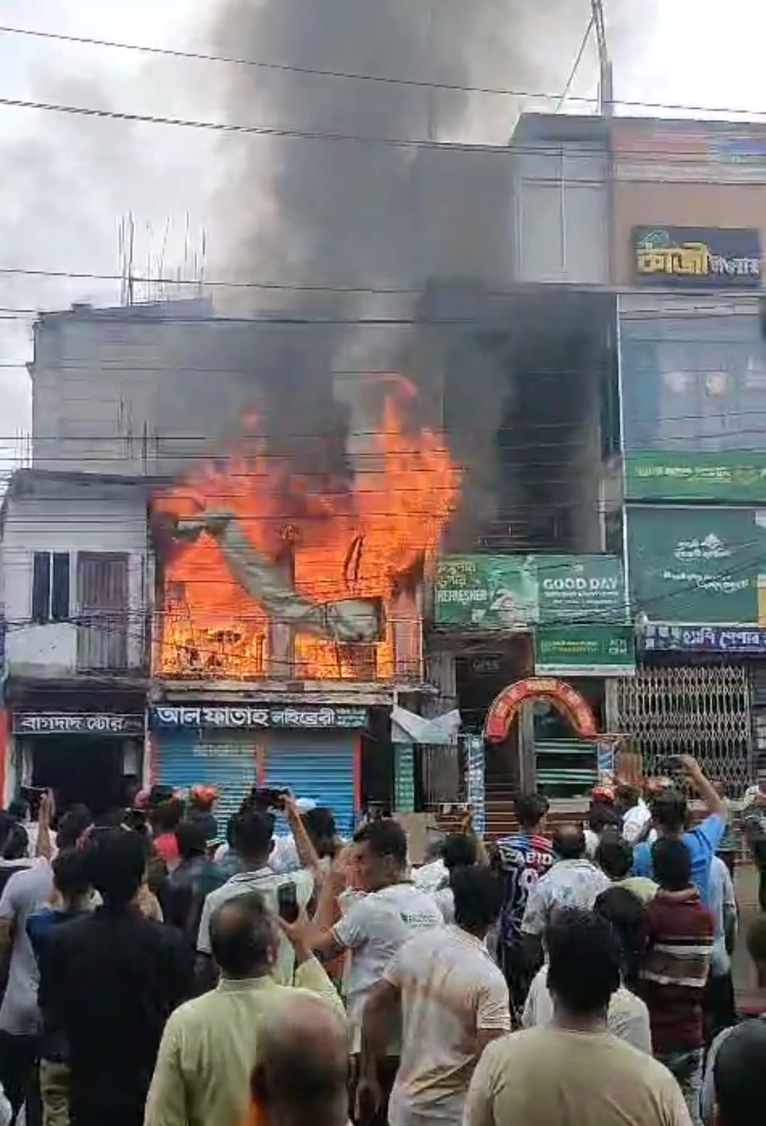 নাটোর শহরে আলাইপুরে ভাই ভাই বেডিং হাউজ নামে একটি দোকান অগ্নিকাণ্ডের ঘটনা ঘটেছে। বর্তমানে আগুন নিয়ন্ত্রণে রয়েছে। এতে প্রায় ১২/১৫ লাখ টাকার মালামাল পুড়ে গেছে বলে দোকান মালিক জানিয়েছেন।সোমবার(২৬ মে) সকাল সাড়ে ১০ টার দিকে শহরের আলাইপুরে অগ্নিকাণ্ডের ঘটনা ঘটে।নাটোর ফায়ার সার্ভিস ও স্থানীয়রা জানান, সকালে হঠ্যৎ করে দোকানে আগুনের সূত্রপাত হয়। এসময় দ্রুত দোকানে আগুন ছড়িয়ে পড়ে। পরে নাটোর ফায়ার সার্ভিসকে খবর দিলে তারা ঘটনাস্থল আসেন। ফায়ার সার্ভিসের দুইটি ইউনিট এবং স্থানীয়দের চেষ্টায় আধা ঘন্টায় আগুন নিয়ন্ত্রণে আসে। এতে ১০/১২ লাখ টাকার মালামাল পুড়ে গেছে। সেই সঙ্গে দোকানে থাকা নগদ ৪০ হাজার টাকা পুড়ে যায়। দোকানে ফোম, তুলা, পদ্দা কাপড়চোপড়সহ দাহ্য পদার্থ ছিল।দোকানের মালিক শহিদুল ইসলাম জানান, সকালে হঠ্যৎ দোকানে আগুনের সূত্রপাত হয়। এতে দ্রুত আগুন পুরো দোকানে ছড়িয়ে পড়ে। এতে ভিতরে সবকিছু পুড়ে যায়। এতে আমার ১২/১৫ টাকার ক্ষতি হয়েছে। তবে ধারণা করছি, সিগেটের আগুন থেকে আগুনের সূত্রপাত হয়েছে।নাটোর ফায়ার সার্ভিসের উপ-সহকারী পরিচালক আক্তার হামিদ বলেন, দোকান মালিকের ফোন পেয়ে দ্রুত আমরা ঘটনাস্থলে পৌছাঁই। এসে দুইটি ইউনিট প্রায় আধা ঘন্টার চেষ্টায় আগুন নিয়ন্ত্রণে আসে। তবে আগুনে দোকানের সবকিছু পুড়ে গেছে। তবে প্রাথমিক ভাবে ক্ষয়ক্ষতির পরিমান বলা যাচ্ছে না। ক্ষয়ক্ষতির পরিমান জানতে আমাদের কর্মীরা কাজ করছে।