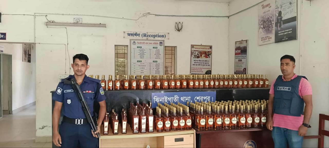 ঝিনাইগাতী সীমান্তে বিপুল পরিমাণে বিদেশী ভারতীয় মদ জব্দ