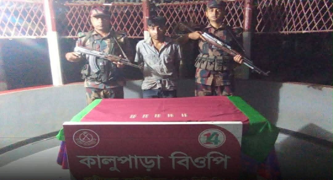 নওগাঁর ধামইরহাট সীমান্তে ৫০ পিচ ট্যাপেন্টাডল ট্যাবলেটসহ রেজুয়ান নামে এক জন চোরাকারবারী আটক